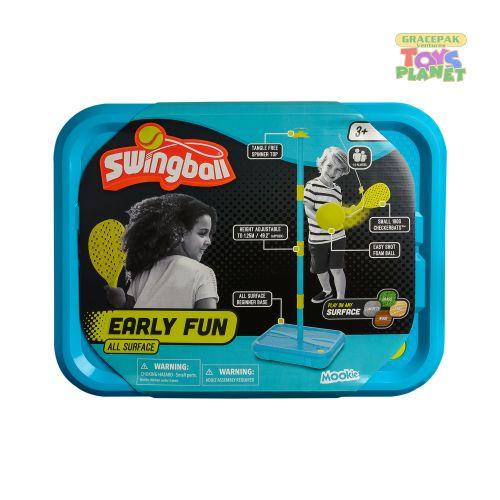 Early Fun Swingball is the perfect introduction to Swingball for little ones aged 3+All the fun of the classic game designed with your children in mind Early Fun Swingball comes with a tangle free spinner topIncludes a foam ball to avoid any injuries and lighter ‘little hands’ bats with smaller handles and a larger face that are designed to be held by smaller hands and help them hit the ballSwingball isn’t just for the back garden; thanks to the all surface base you can play anywhere on any surface. Simply fill the base with sand or water and then you are ready to goThe all surface base is new and improved, containing an integrated handle for easy portability and a water plug to avoid any spillages when filling up your base Item Dimensions 38.6 x 46.2 x 142.2 centimeters Item Weight 1.46 kg