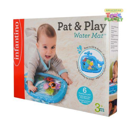 Six floating pals move when baby pats this colorful mat. Perfect for tummy time and high chair play. Features & details Design: Fillable water mat for tummy time and sensory play complete with squishy tail and safety edges, for interactive and mess free water play while learning cause and effect Developmental benefits: Mat helps baby to engage head and neck muscles while encouraging grasping and batting to refine motor skills with floating sea pals Great for gifting: This mat is packaged in easy-to-wrap packaging and is a suitable gift for any occasion including baby showers, birthdays, Christmas, Easter and more How it works: Simply fill the outer edge with air, and the inner mat with water until it reaches the fill line then drain and deflate for compact storage or on-the-go entertainment Recommended for 3+ months.