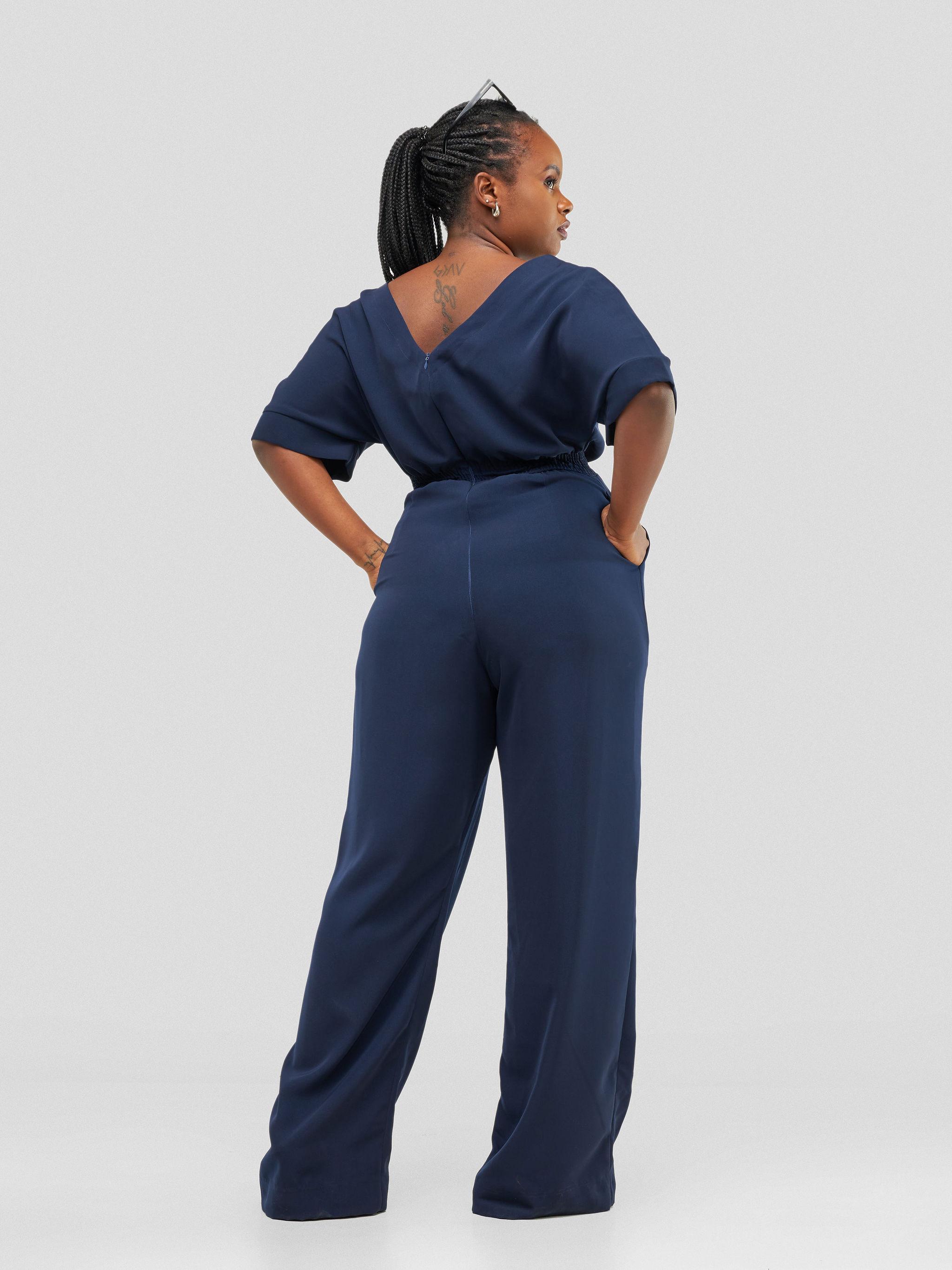 jumpsuit, wide leg pants, kimono sleeve, shirred waist, Vneck, zipper at the back